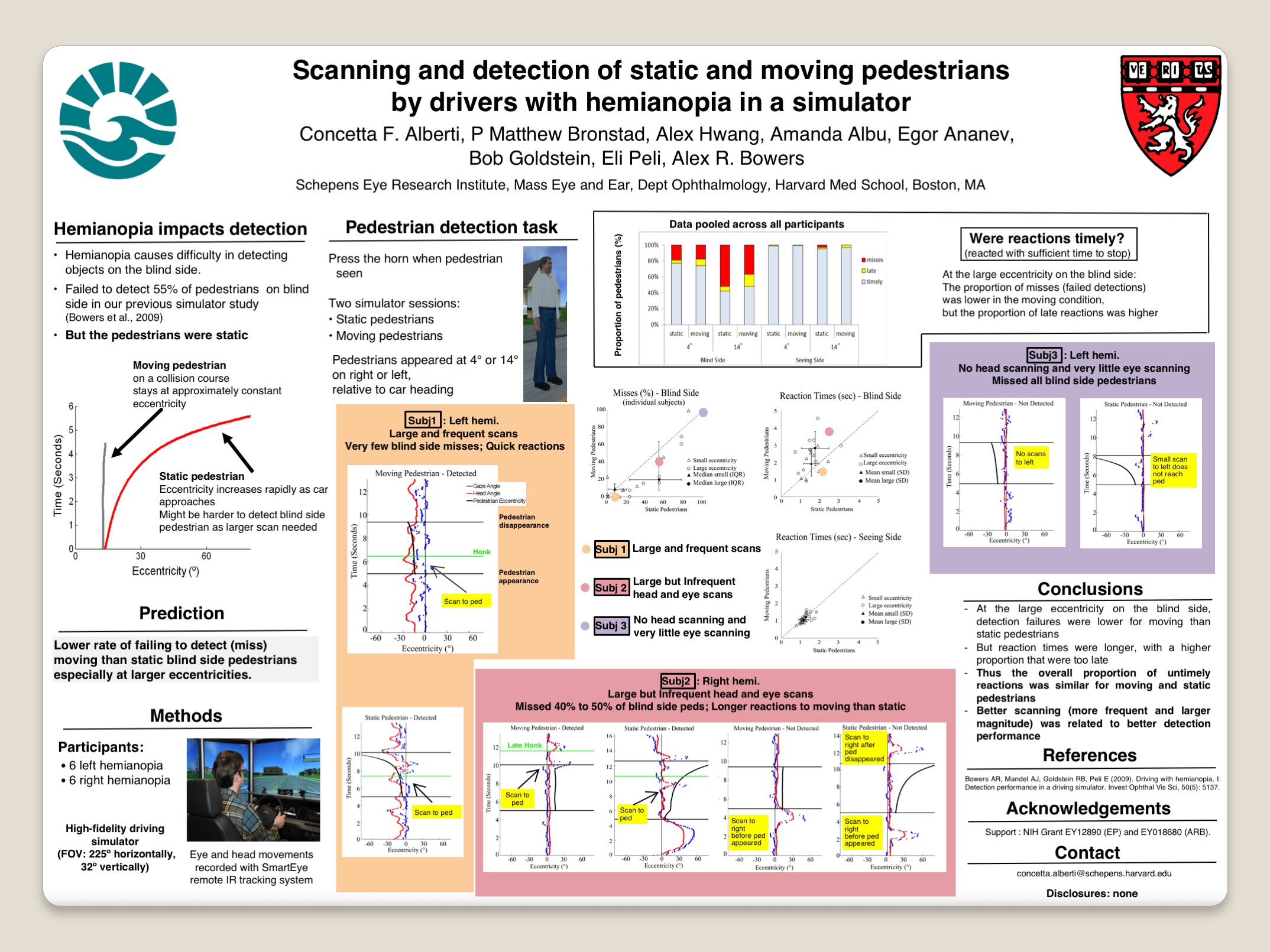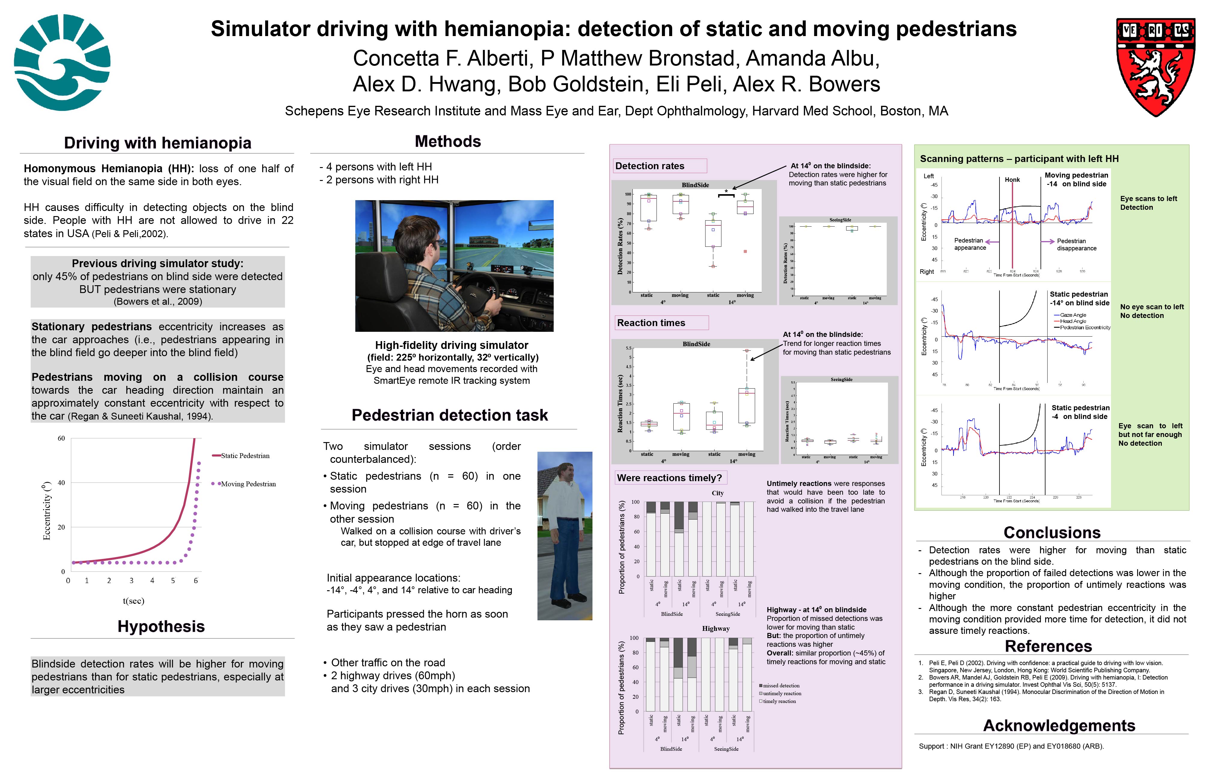 • Alberti, C.F., Goldstein, R. Peli, E., Bowers, A.R. (2017). Driving with hemianopia V: Do individuals with hemianopia spontaneously adapt their gaze scanning to differing hazard detection demands? Translational Vision Science & Technology, 6(5), 11. pdf